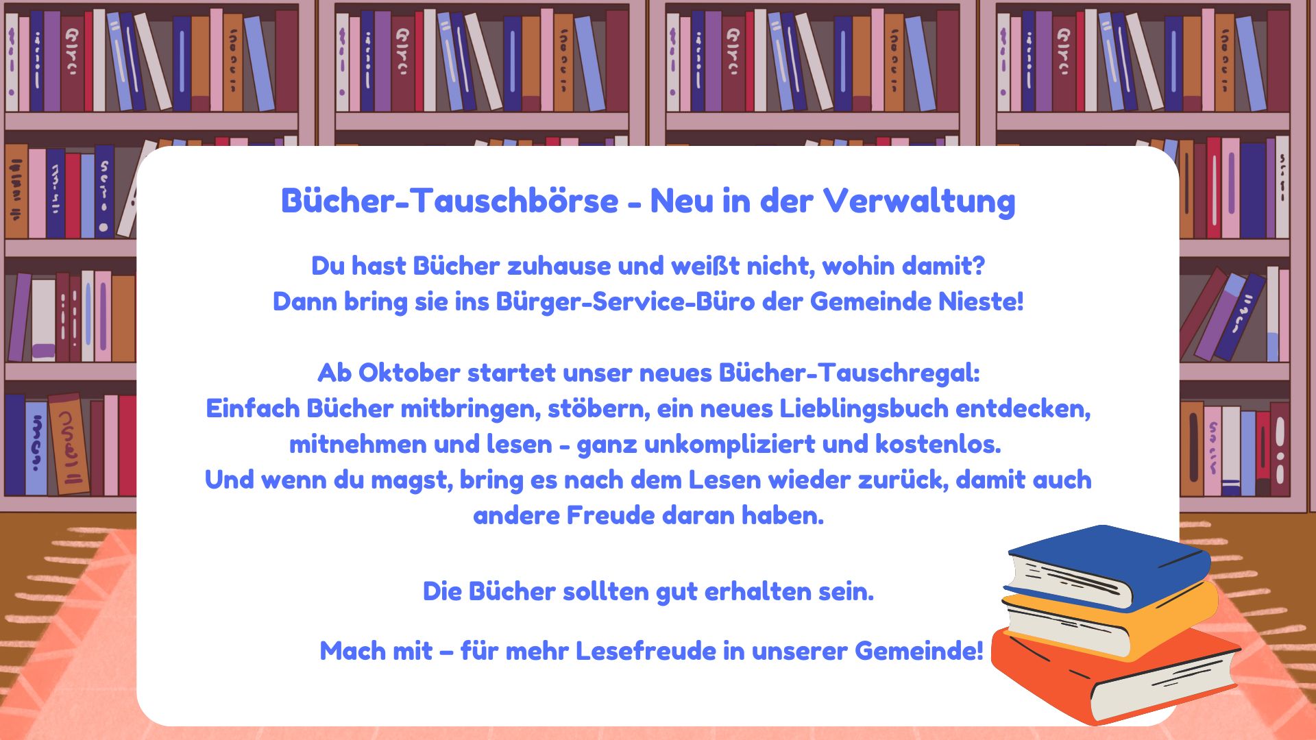 Ab Oktober startet unsere Bücher-Tauschbörse in der Verwaltung.