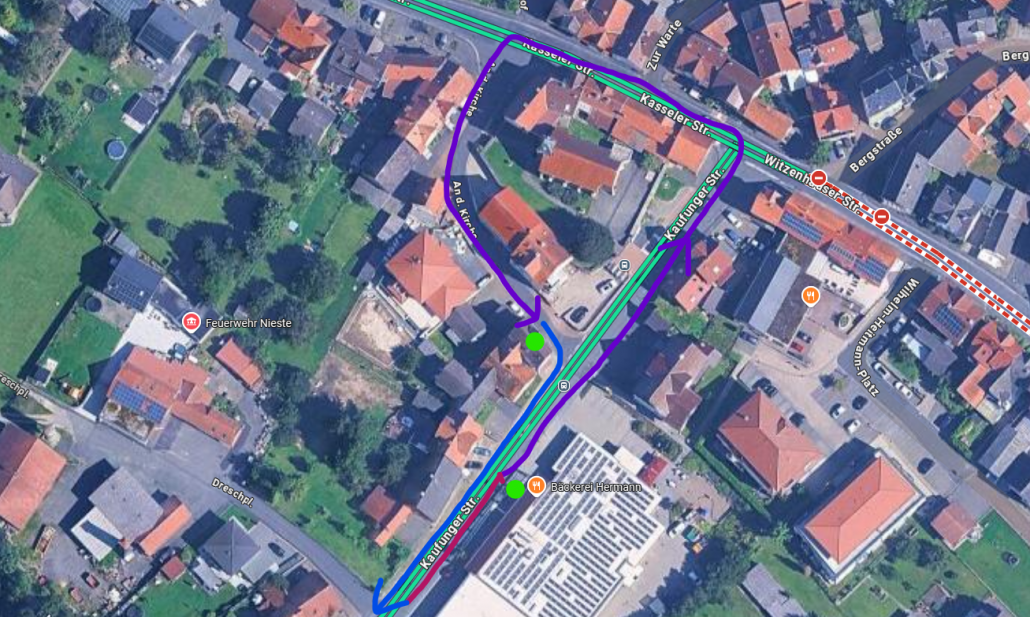 - Anwohner der nördlich der Witzenhäuser Str. liegenden Straßen, müssen über die Straßen „Vor der Warte“, „Wartenhof“, Schöne Aussicht“ zur Straße „Am Kamp“ fahren und weiter zur Kasseler Straße.