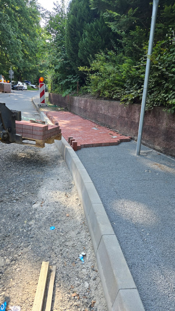 Der Ausbau erfolgt dann vom Ortsende in Richtung Dorfmitte. Neben dem Straßenbau durch Hessen Mobil, baut die Gemeinde die Nebenanlagen , sprich Gehwege, Stützmauern und Bushaltestellen „Schule“ barrierefrei aus. Der Wasserverband saniert Teile des Kanal